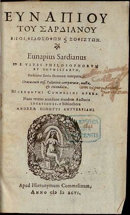 The Greek sophist and historian, Eunapius (ca. 345–415) was born in Sardis but studied and spent much of his life in Athens as a sophist and historian. In this text he covers figures of personal or intellectual significance to him in the period from Plotinus (ca. 250) to Chrystanthus (ca. 380), including one remarkable woman, Sosipatra, and then focuses on Iamblichus and his students.